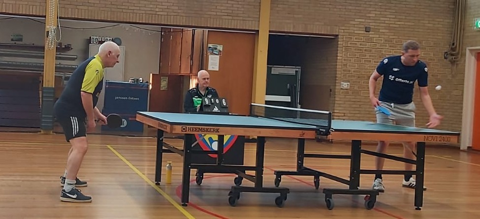 Frans S won 3 x , waaronder een spannen de pot tegen Peter S ( 11-8 in de 5e) en werd daarmee 3e, Peter Schenk 4e (o.a. door een vijfsetter tegen Aart), Aart Luitjens 5e en Bram Schrijnders 6e.